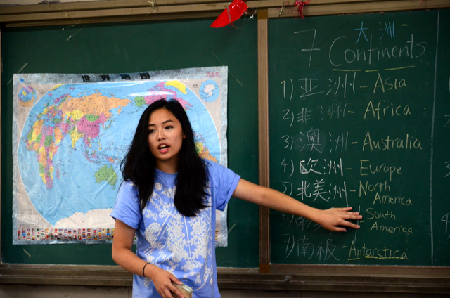 来自英国的Jasmine通过识地图,指地图,拼地图等活动,教孩子们用流利的英语识别地图上的七大洲和四大洋。孩子们在这个活动当中很快就掌握了Asia 、Africa 、Europe …….Pacific 、Atlantic、India Ocean、The Arctic Ocean这些单词,而且学得又很开心。