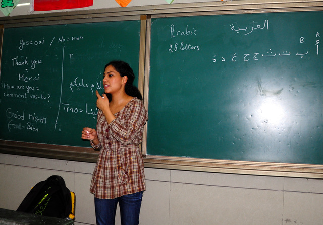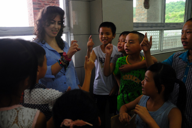 来自Turkey(土耳其)的Dilara和学生们边敲打着手指头,边用中英文对答数“1、2、3、4、----10、11、12、13、-----18、19、20”等阿拉伯数字。我们的学生可以用流畅的英语接龙下去,Dilara也可以用比较溜的中文数数了。这个活动其实就是我国古代孔子提出的教育方法:教学相长。