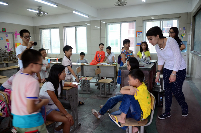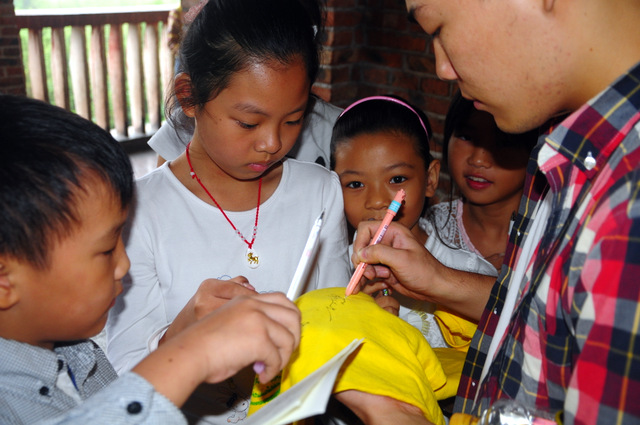“Amazing Race”( 奇妙旅程)结束了,但学生们的热情还没有完全退去,有的继续与志愿者老师嬉戏,有的拿着夏令营的文化衫或笔记本让志愿者老师签名,还有的邀约自己喜欢的志愿者老师合影留念。(文/刘金辉)