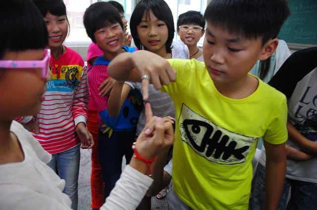 今天下午三点左右,小学部礼正楼二三楼热闹非凡,不仅在室外的走廊上,还是在教室里面,都簇拥了很多学生和一些中外志愿者。原来是“幸福微梦想”夏令营的“Amazing Race”正在进行。