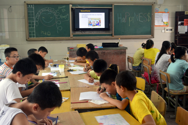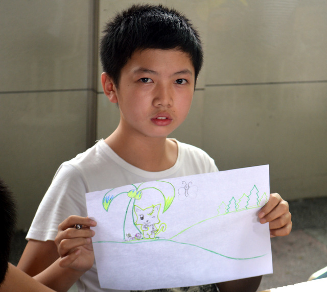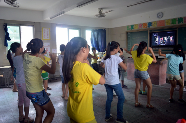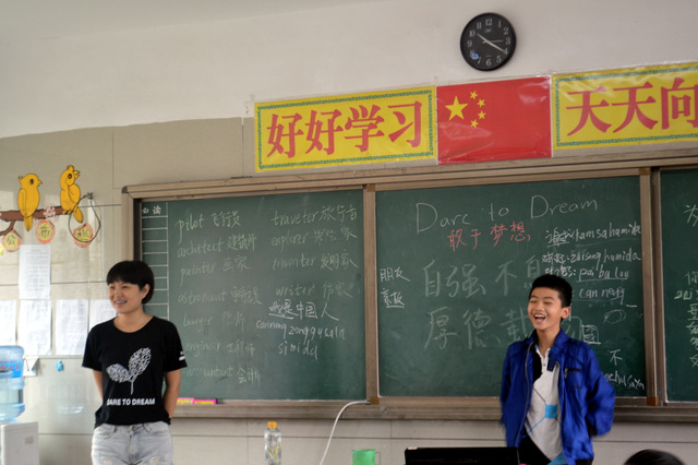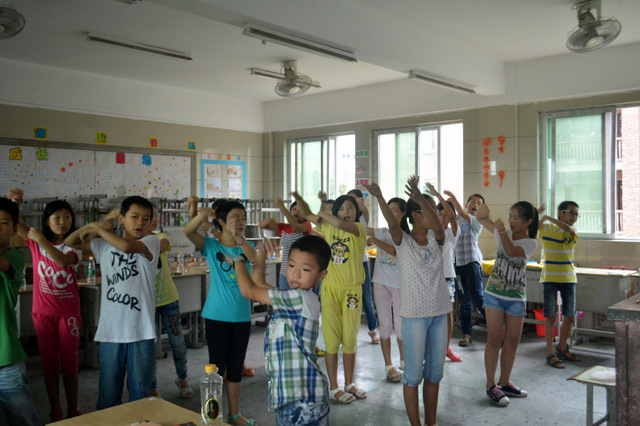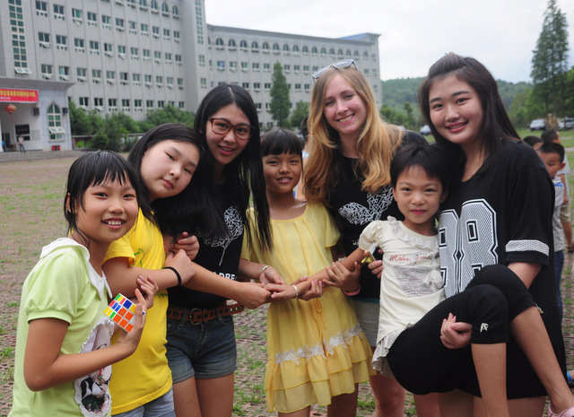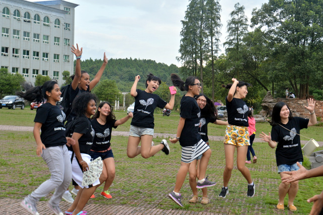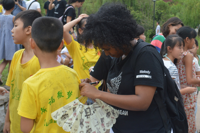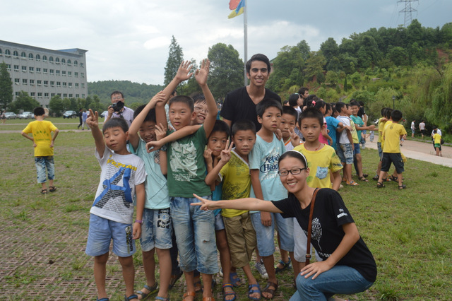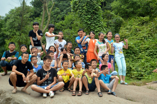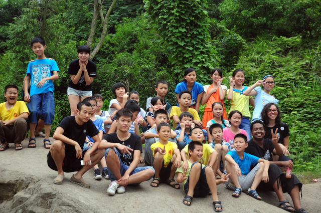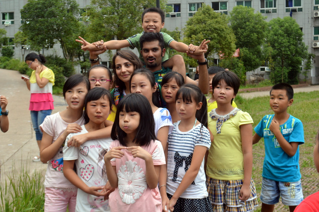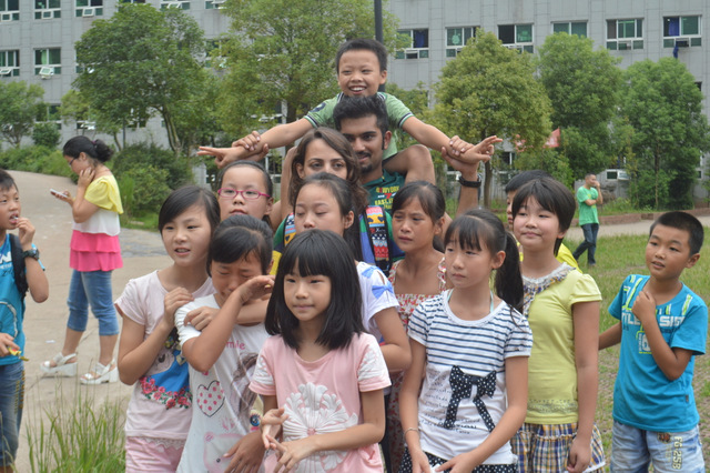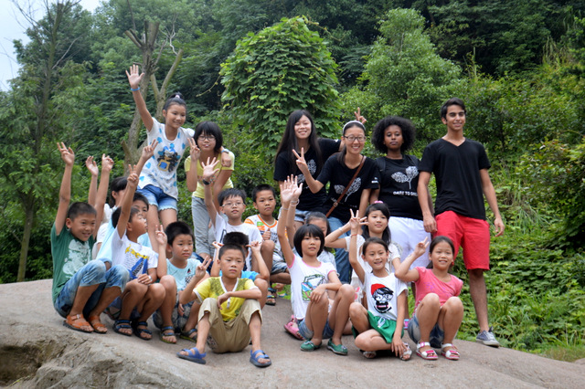 尽管第二期的“幸福微梦想”夏令营还有两天结束,中外志愿者要18号上午才离开学校,因天气原因——怕那天下雨,就把离别前的合影提到今天照。因此,中外志愿者和学生们的离愁就率先上演了。