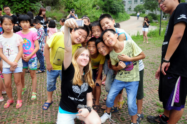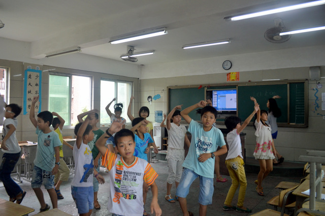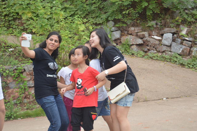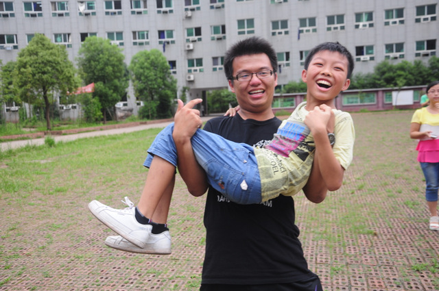 看,这边是志愿们尽情欢乐,享受快乐的风景:他们或手牵手跳起了探戈,或相拥在一起摆起了 pose、扮起了鬼脸抢起了镜头。瞧,那边是孩子们黏着自己班上的跟班老师,拽的拽,拉的拉,抱的抱,亲的亲,无不是一派祥和的景象。