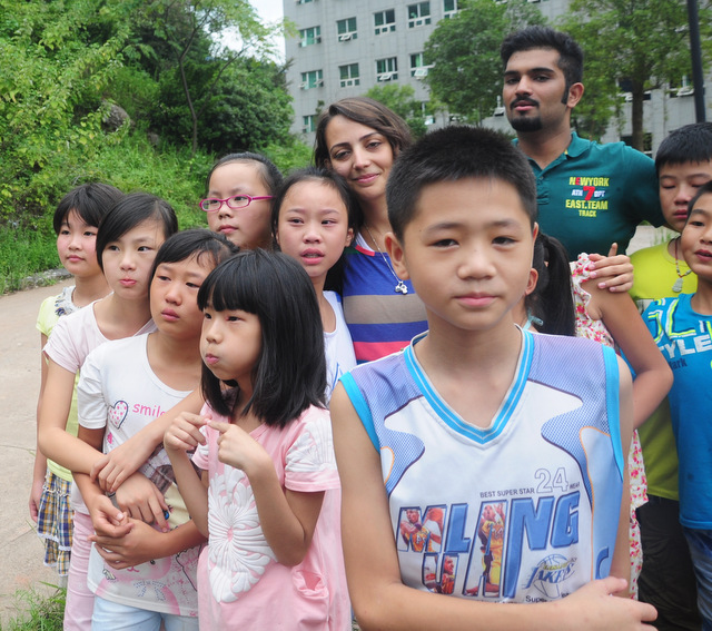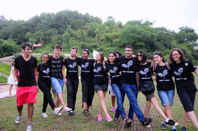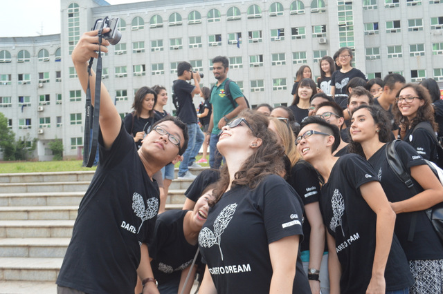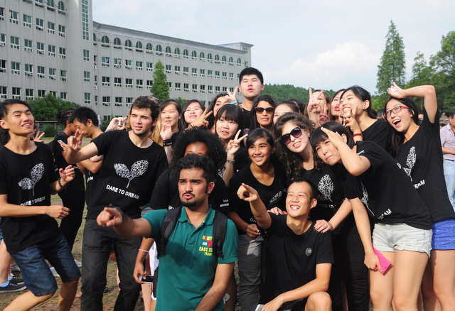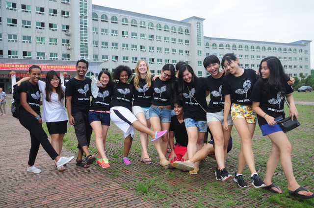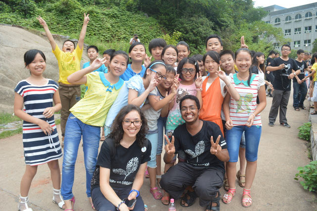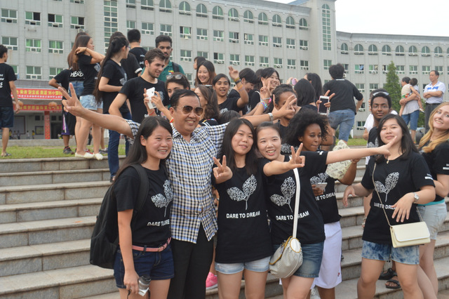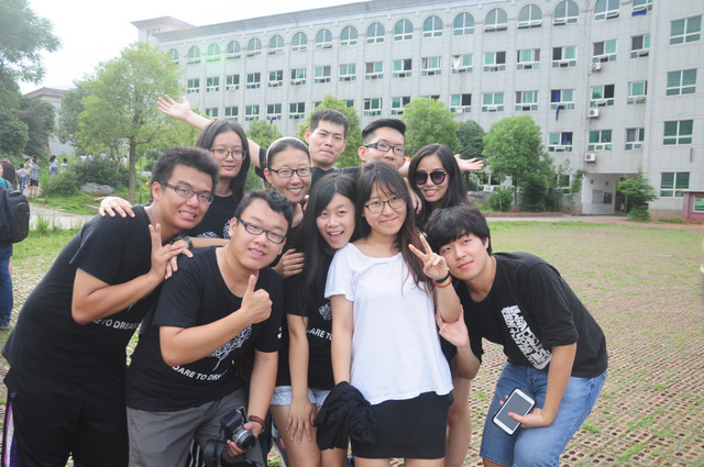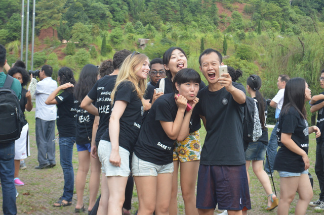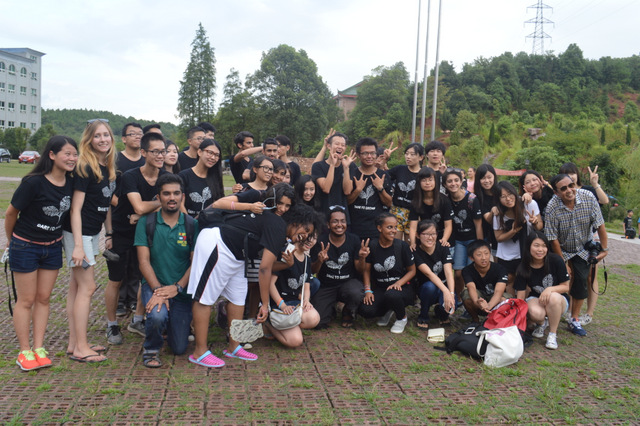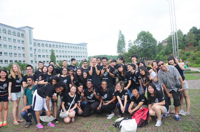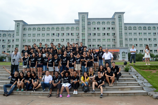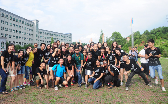 今天下午四点左右,“幸福微梦想”夏令营的中外大学生志愿者们与第二期的营员们在学校广场照相留念。