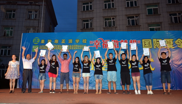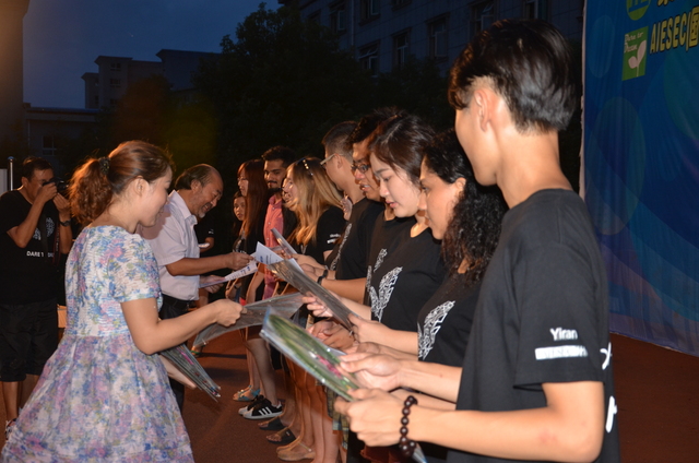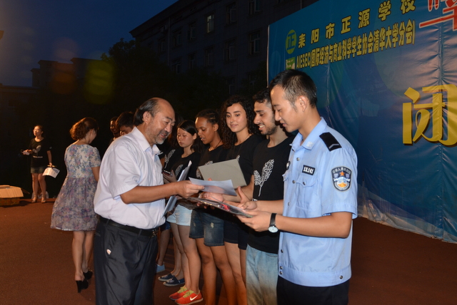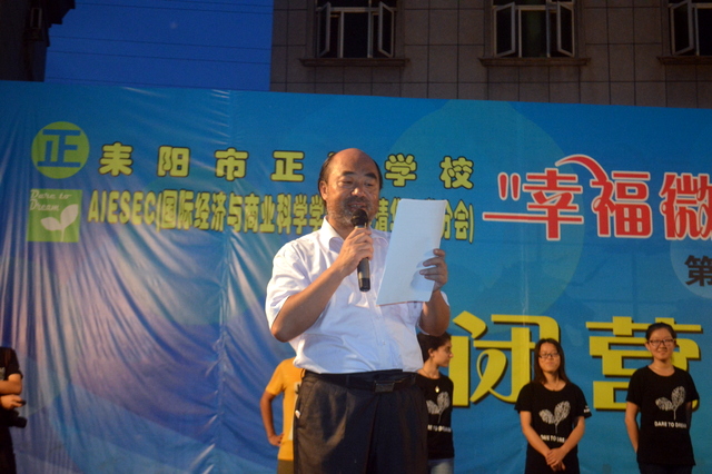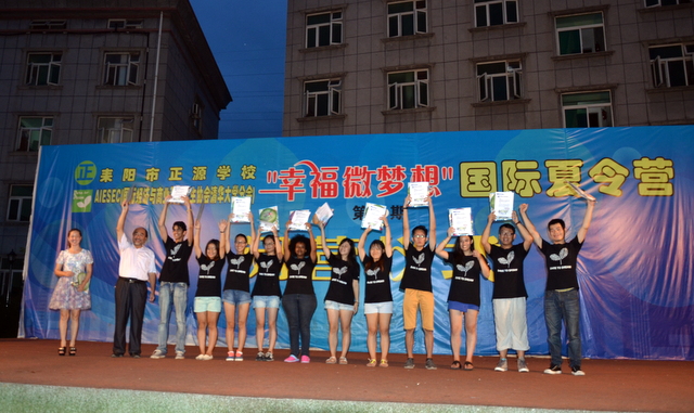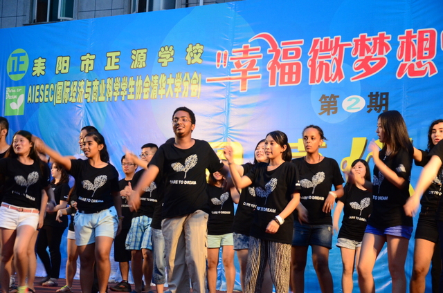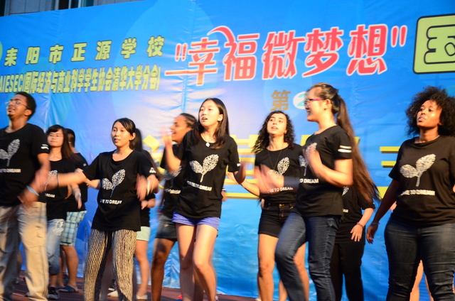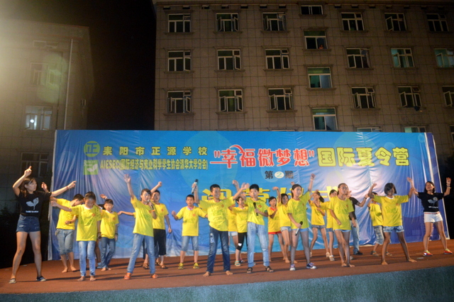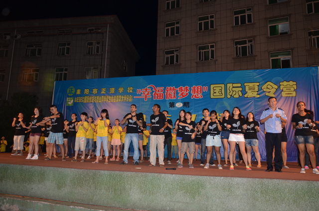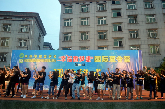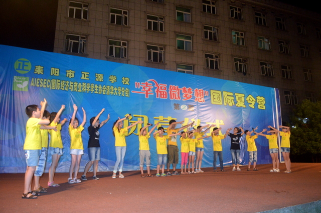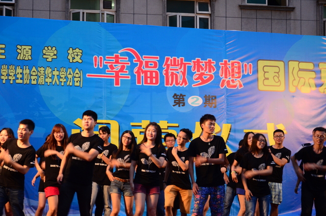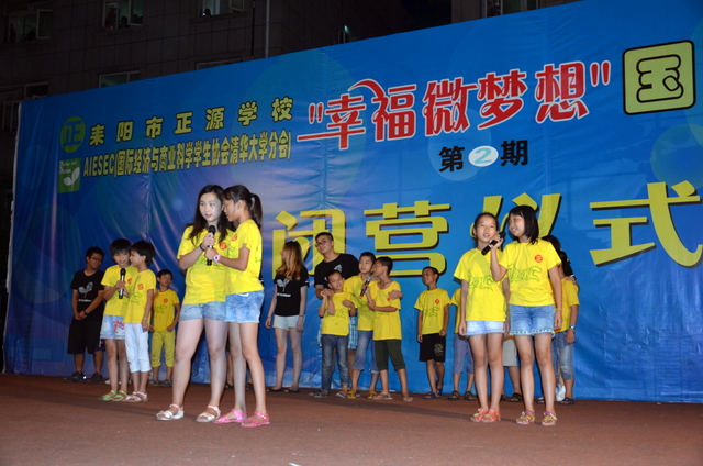 晚上7点,中外志愿者大学生在《Timber》和《绿光》欢快而奔放的舞蹈中开启了我校“幸福微梦想”夏令营(第二期)的闭幕仪式。仪式由来自中国青年政治学院的徐萍和来自清华大学的苏莹主持。校长罗湘云、培训部主任刘静、宣传处主任王英林等出席了仪式。