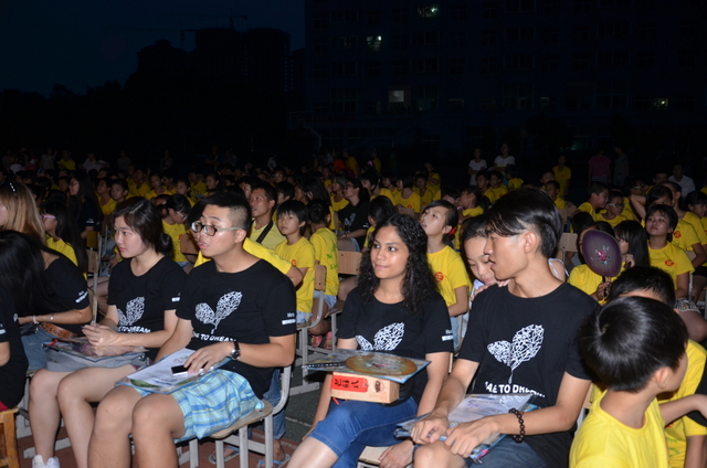 晚上6点,第二期"幸福微梦想"夏令营的孩子们穿着营服陆陆续续地来到了小学部的操场,等候参加今晚的闭营仪式。先是在培训部刘静主任安排下,以班为单位照好“毕业照”,然后罗校长同中外志愿者大学生和所有的夏令营期间工作的老师合影留念。