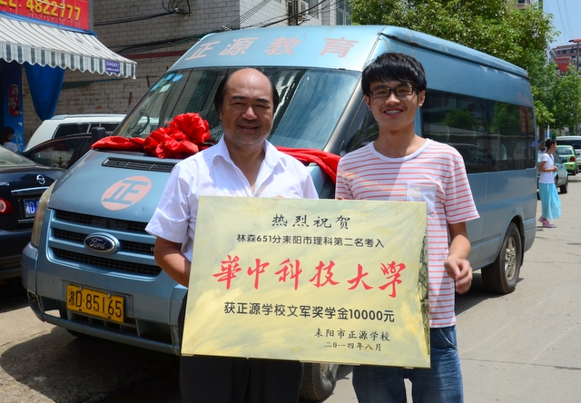 林森同学在2014年高考以651分耒阳市理科第二名的成绩考入华中科技大学就读电气工程及其自动化专业。