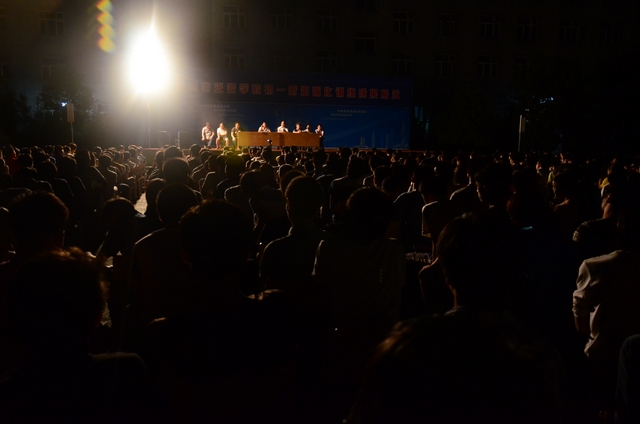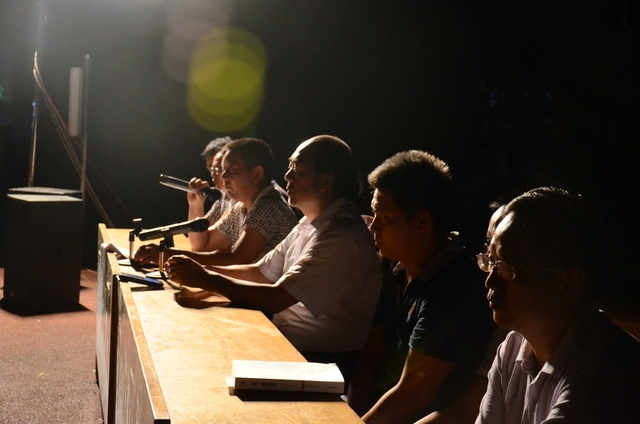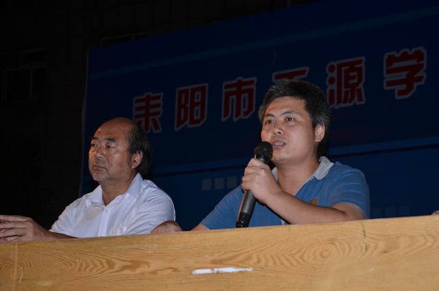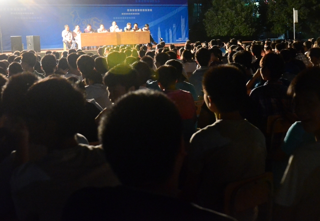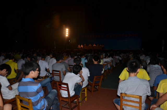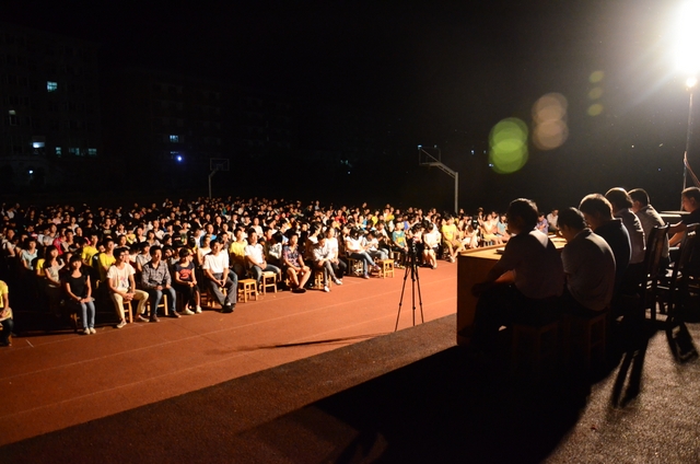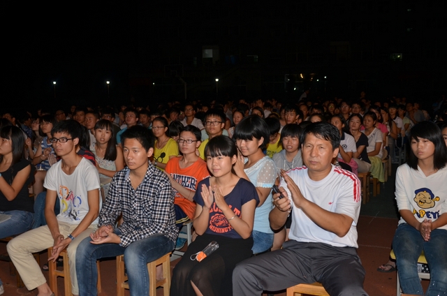 2014年8月20日晚上,高三年级及补习班共700余人云集在小学生运动场, 举行月考总结大会,罗校长与高三年级领导及骨干老师罗新成、陈斌、王小灿、徐文森、李康活、吴小军、蒋国华等在主席台就坐。