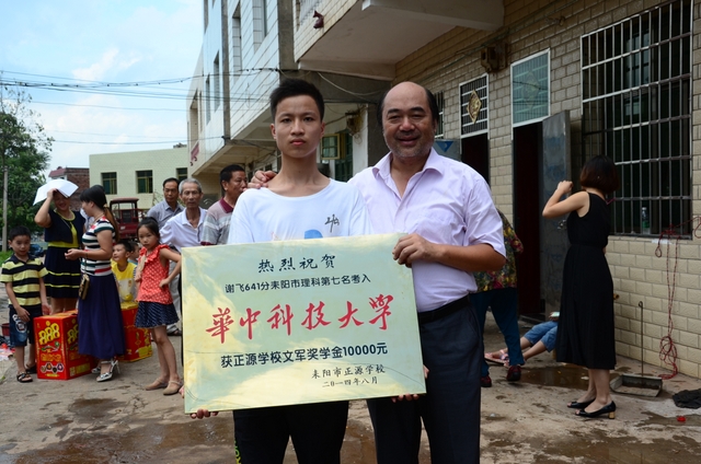 在今年的高考中,廖媛以643分排名耒阳市理科第六名的成绩被武汉大学录取;谢飞以641分耒阳市理科第七名考入华中科技大学。两位同学都是当年从本地小学毕业后进入正源学校就读初中直到高中毕业。在学校勤奋好学,全面发展,今天如愿以偿考上了自己理想的大学,心存感念,廖媛说,六年来,是在正源学校这个有着浓郁学习氛围的环境里成长起来的,感谢罗校长,感谢老师,感谢同学们,今后自己还会更加努力,为母校争光。