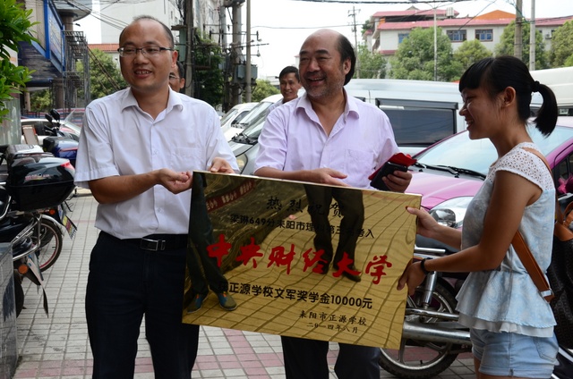 2014年8月24日,梁琳一家为其举行荣升大学庆祝宴,感谢老师和亲朋所给予的关爱。中午时分,罗校长偕学校行政与高中老师前往祝贺并为梁琳颁发奖牌和10000元文军奖学金。