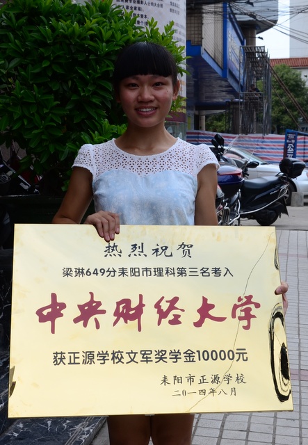 祝贺梁琳耒阳市理科第三的成绩考入中央财经大学