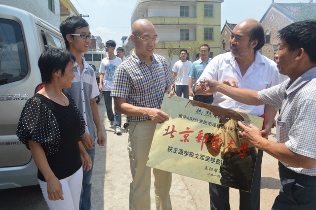 热浪滚滚,礼炮声声,欢声笑语阵阵。8月28号中午,大市长丰村11组老年人活动中心,黄涛同学的谢师宴在这里举行。中午十二点多,正源学校师生一行20多人在罗校长的带领下应邀赴宴,黄涛一家人在门口热情迎接。罗校长亲自为黄涛颁发了“正源学校文军奖学金”一万元,并送上了牌匾。师生合影后在活动中心二楼礼堂就座。黄涛的父母常年在外打工,对孩子很少照顾。黄涛同学考入我校清华班后,通过自己的刻苦努力,今年高考考出了 637分的高分,排名耒阳市理科第8 名,被北京邮电大学录取。对正源学校老师的辛勤栽培,黄涛同学的老实本分、不善言辞的父亲连连不停地说着“感谢”,感谢学校既让孩子长了身体,更让孩子高考考出了好成绩。礼堂里不时传出阵阵祝贺声。黄涛的家乡紧邻耒水东岸,村子四周是大片的良田,“一水护田将绿绕”。每年春天油菜花开时节,十里黄花,香飘大地。灵山秀水为这里孕育了一个个杰出的人才。(文/王春云)