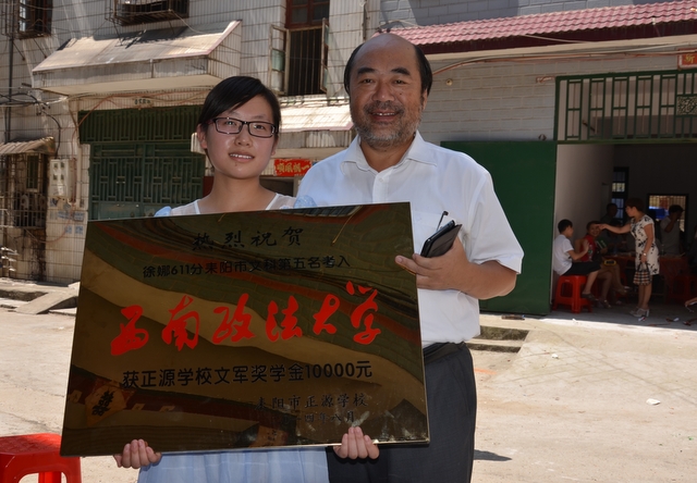 徐娜同学2007年从聂洲完小毕业后进入正源学校读书,去年应届高考,高出二本线32分。然而,志存高远的徐娜同学觉得有很多遗憾,连志愿都未填,毅然选择母校复读。今年高考提高77分,以611分耒阳市理科第五名的优异成绩考上了自己理想的大学——西南政法大学。在谈及两次高考经历,徐娜首赞正源科学组考、周到服务功不可没,回想首次高考,自己提前半个月就搬到家里走读,至今有些后悔。