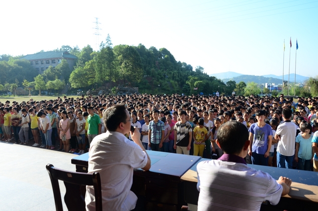 早晨七点半,太阳将它的热量毫不吝啬地倾洒向大地。早餐过后,我校准高一的同学就已经早早地在广场排好队,迎接新学期第一次集体班会的召开。经过严格的考试、选拔,今年我校从初二1700多名学生中选出1026人升入准高一,然后按成绩编成18个班,其中六个清华班,12个科技班。他们从八月二十号开始就提前进入了高中学习。经过短短10天的时间,学生们都很快适应了从初中到高中角色的转换,整个年级各项工作都步入了正轨。此次集体班会由学校教研室主任李清朵做中心发言,李主任向全体刚刚升入准高一的同学提出了几点希望和要求:一是坚定信心,瞄准目标,为人生的终身发展奠基。二是适应环境,调整状态,做到轻松愉快地学习。三是培养优良的学习品质,做学习的主人。“‘雄关漫道真如铁,而今迈步从头越。’亲爱的同学们,你们迈出了青春的又一步,祖国期待你们早日成才,家长望子成龙的心情更加迫切。让我们从现在做起,从头做起,勤奋学习,立志成才,我相信,你们一定不会辜负学校老师和家长的殷切期望,迅速成长为国家的有用之才。”李主任的殷殷教诲、谆谆教导赢得了全体同学一阵阵热烈的掌声。为了增强学生自主管理的意识,年级在最短的时间内成立了学生会,由学生会轮流值日,负责年级的各项日常管理工作。学生会全体成员站在主席台前排亮相,对于他们这种自信、无私奉献的精神,同学们也报以热烈的掌声。会议持续了一个小时,虽然同学们晒得热汗直流,但是整个会场秩序井然。(文/王春云)