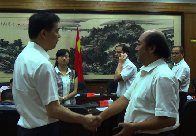 周海兵市长与梁老师亲切握手