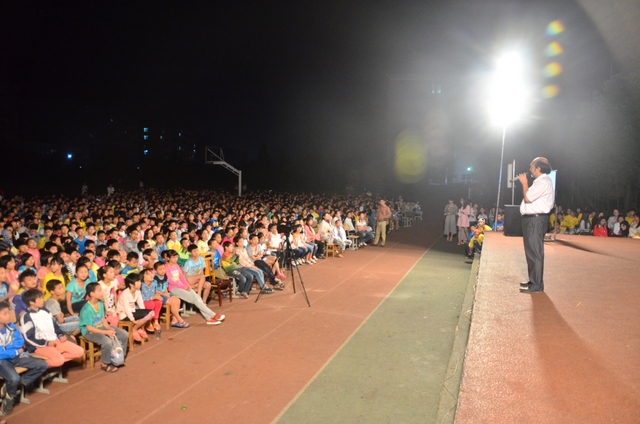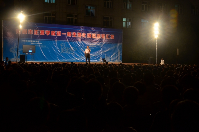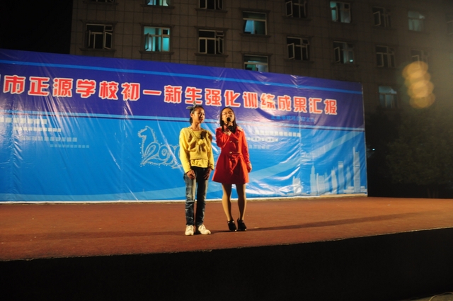 汇报演出由准高一罗佳(女)和高二刘慧(男)两同学主持,罗校长观看的演出并发表了激情洋溢的讲话。“自信创造奇迹,拼搏续写神话”,罗校长的这句名言让全场的初一学生乍地沸腾起来,他们倍受鼓舞,憧憬未来,对六年后的高考信心百倍。