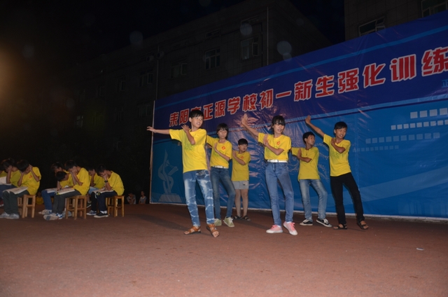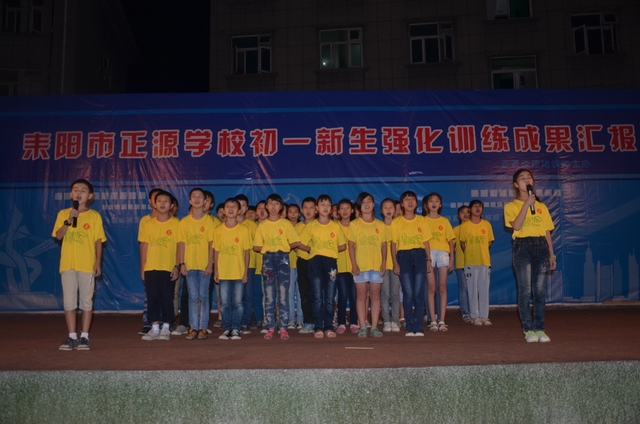 2014暑假,我校对初一新生进行为期一个月的英语强化培训。目的是让这些学生提前做好英语入门学习的准备,掌握英语基本学习的方法并尽快适应我校寄宿生活。老师从英语字母开始,对学生进行英语发音,拼读技巧,日常交际用语运用等全方位培训。培训结束后为检测学生英语学习情况,特举办了这次成果汇报演出。演出分为五个环节,依次为“话剧: We are family”、“合唱 Do,Re,Me 及 舞蹈《歌舞青春》”、“英语老师与学生互动环节”、“新概念英语课文背诵”、“话剧:We love English”。