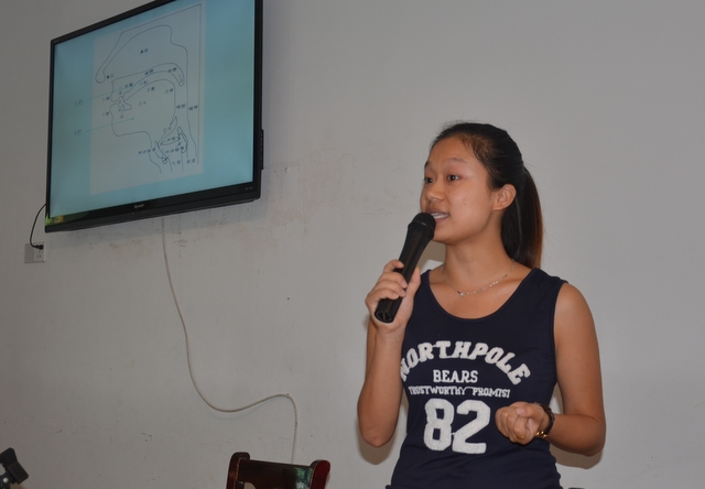 王老师用亲切的声音,标准的发音,一次次地带大家齐读拼音,对容易出错的拼音进行了对比与纠正发音。并就如何在平时练好普通话,要做哪几个关于舌头与口腔等几个部位锻炼的动作进行了传授。