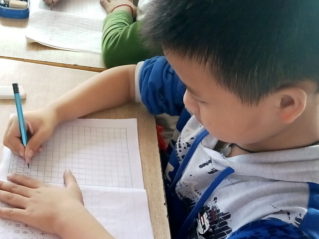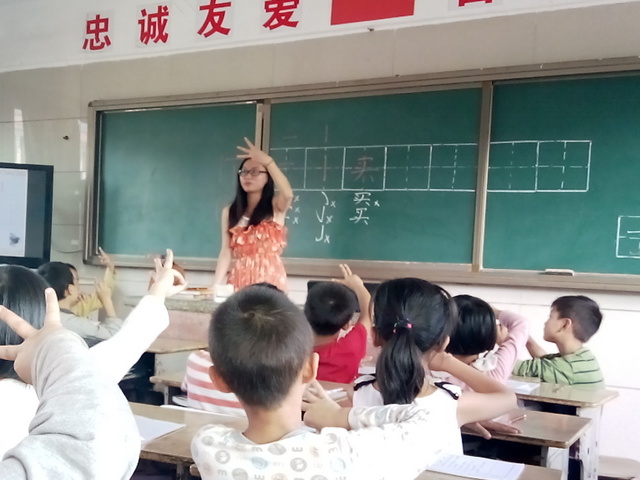 在这堂课里,周老师展示了自己非常扎实、专业的书法功底,她给学生做出的示范书写笔力遒劲,间架稳到,讲述准确到位,化难为易,由引导学生仔细观察图片——老鹰利嘴的特点,而过渡到引导学生观察“钩”的特点,由了解“钩”的特点从而理解、掌握如何写“钩”,顺水推舟在老师的示范下,学生很快地掌握“横钩”、“竖钩”“竖弯钩”的写法,并举一反三类推写含有这几种笔画的汉字书写。周老师在课堂上循循善诱,由易到难,完全遵循了学生的认知规律。在她的细心指导下,孩子们个个把汉字写得有模有样,真不愧为“强将手下无弱兵”啊!