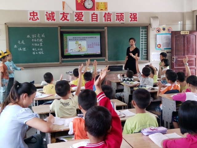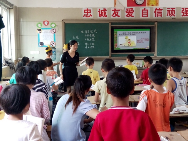 9月26日下午第5节课,在小学部三年级153班,新进语文老师陈慧执教了《狐假虎威》一课。
