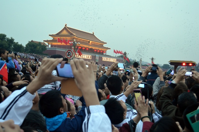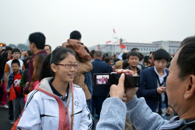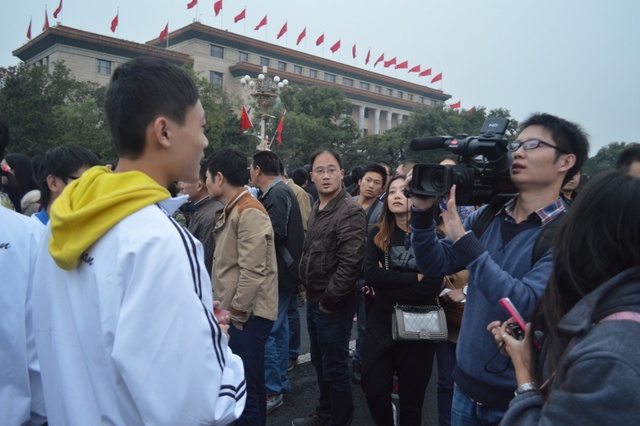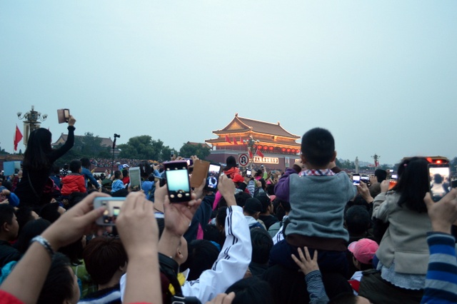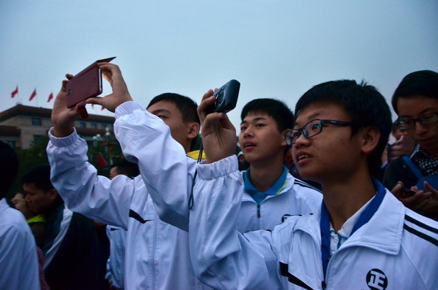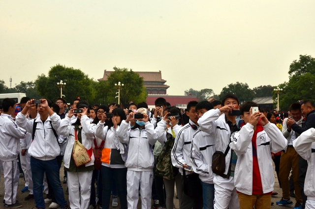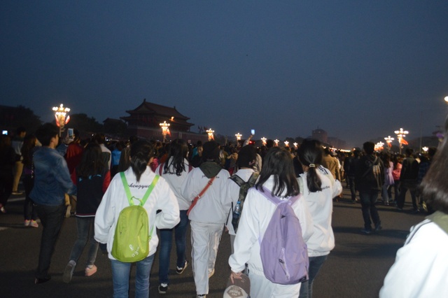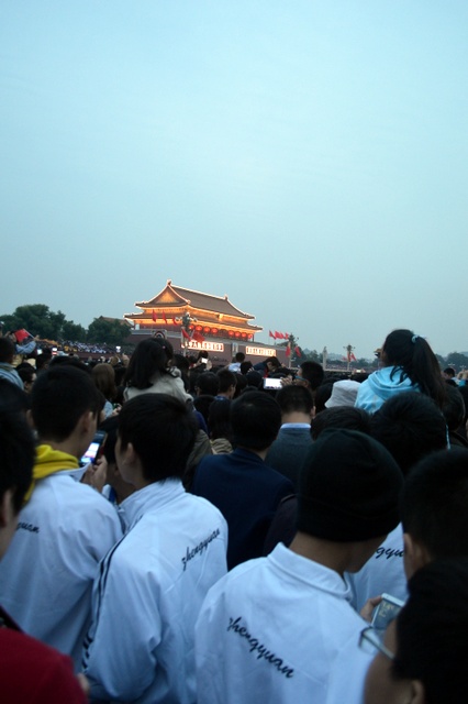 当同学们到达天安门广场时,天空的东方刚露出乳白,然而此时的天安门广场炬形花篮与人民英雄纪念碑前后已经“座无虚席”了。后面的新闻资料显示,来天安门广场参加本次十一国庆升旗仪式的人民群众多达12万多人,当中有老人也有女人和小孩,有领导也有工人农民的普通群众,有劳模也有平凡岗位的公民,有汉族人也有其他少数民族的代表。