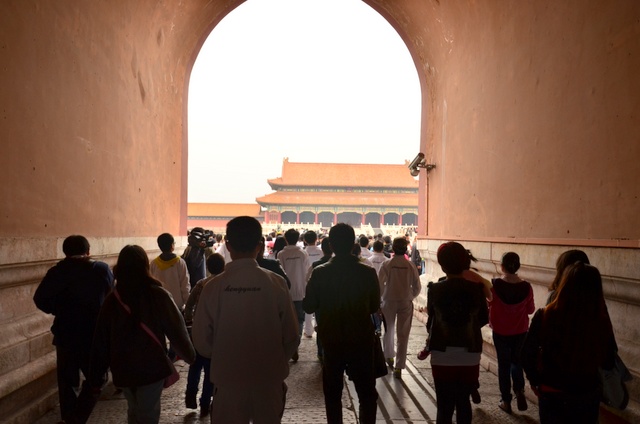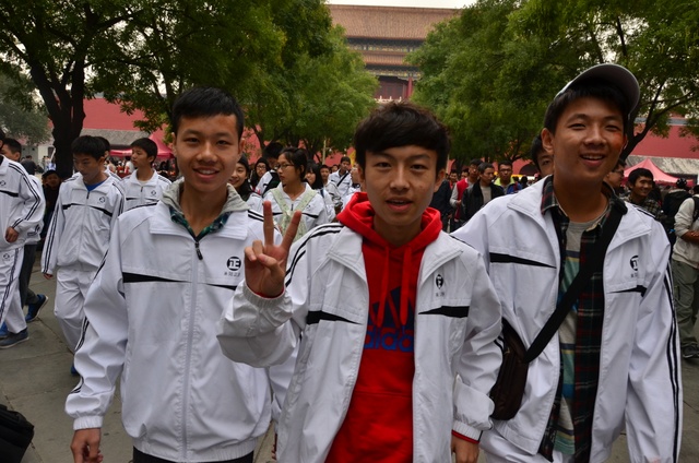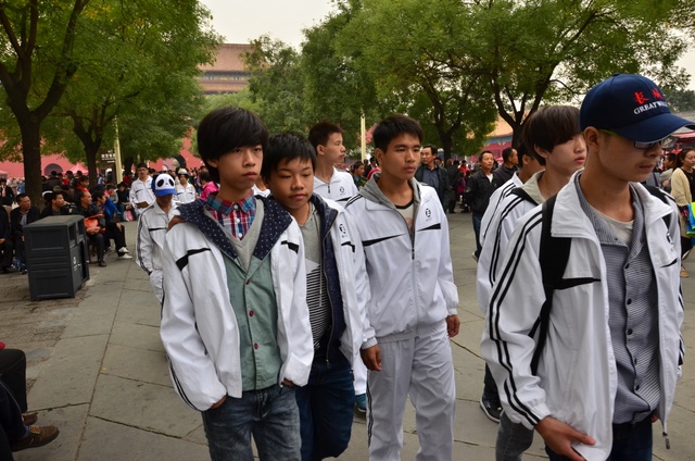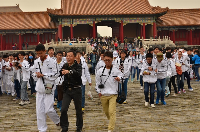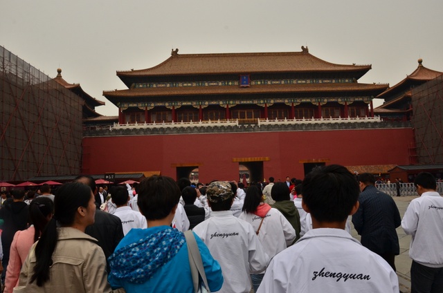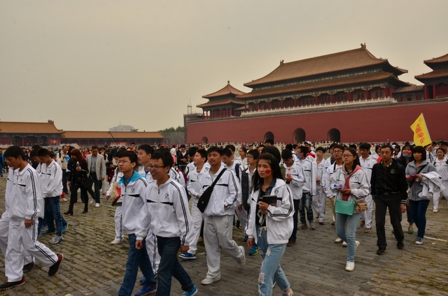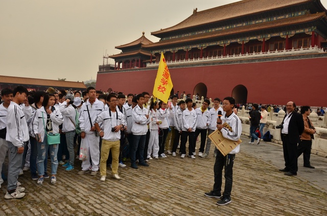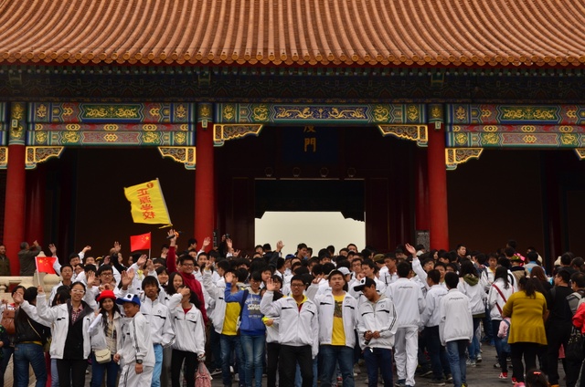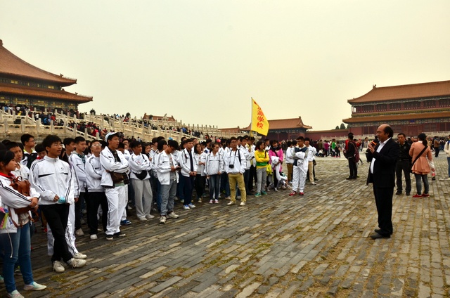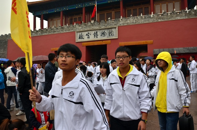 上午10半左右,同学们排着整齐的队伍迈进了故宫。故宫又叫紫禁城,是中国现在规模最大的皇宫,也是世界上最大的皇宫。黄色的琉璃瓦。红色的围墙,这种基调的构成主要是出自中国古老的思想:以中心之地的黄色和代表光大吉祥的红色来表现。这种色彩也昧示了皇帝居住的紫禁城为天下的中心。