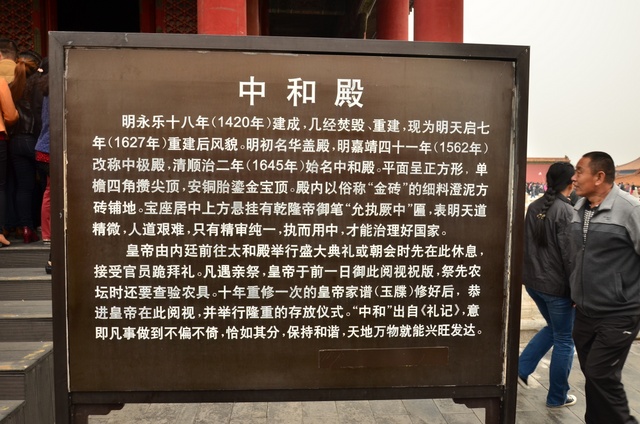紫禁城正前是正阳门,北部是天安门广场,天安门后是端门、午门,在以后就是紫禁城内,紫禁城的重要建筑物都排列在一条直线上。在正阳门与天安门之间的广场原先还有一座门,叫大明门,清代叫大清门,民国元年改名为中华门。永乐年间该门建成时,朱棣命大学士解缙题门联,缙书古诗“日月光天德,山河壮帝居。”日月两字正好组成了一个“明”字。