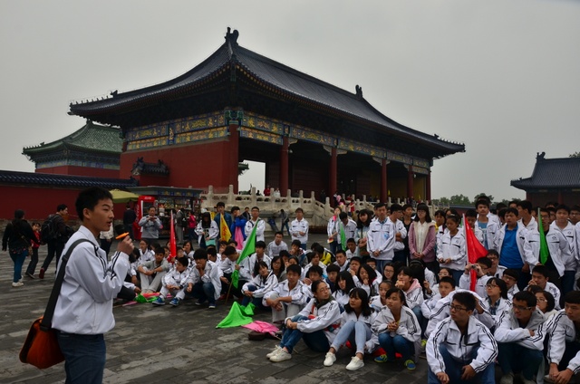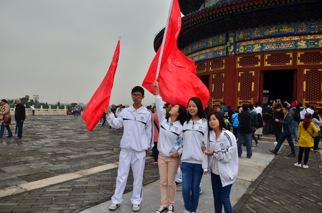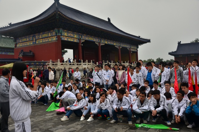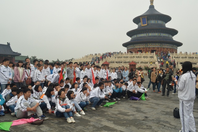 10月4日,进入北京励志游最后一天。同学们来到了天坛公园参观,感受中国古老文化的源远流长和博大精深,并且立志要发愤图强,让世界了解中国,让汉语普及全球。