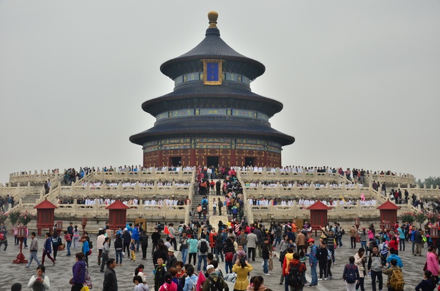 天坛,世界文化遗产,全国重点文物保护单位。地处北京市南部,东城区永定门内大街东侧。占地约273万平方米。天坛始建于明永乐十八年(1420年),清乾隆、光绪时曾重修改建。为明、清两代帝王祭祀皇天、祈五谷丰登之场所。天坛是圜丘、祈谷两坛的总称,有坛墙两重,形成内外坛,坛墙南方北圆,象征天圆地方。主要建筑在内坛,圜丘坛在南、祈谷坛在北,二坛同在一条南北轴线上,两坛之间以丹陛桥相连。“祈谷坛”,用于春季祈祷丰年,中心建筑是祈年殿。“圜丘坛”,专门用于“冬至”日祭天,中心建筑是一巨大的圆形石台,名“圜丘“。圜丘坛内主要建筑有圜丘坛、皇穹宇等等,祈谷坛内主要建筑有祈年殿、皇乾殿、祈年门等。