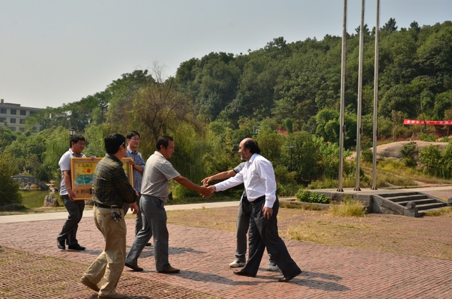 罗校长先带领考察团参观了我校原生态的校园,途中指着前栋教学楼东边那片绿茵野草说:“瞧,你看这片绿色——这就是顺其自然的美景呀。”这下可逗笑了参观团的老师们,且纷纷点头赞叹罗校长的理念先进。