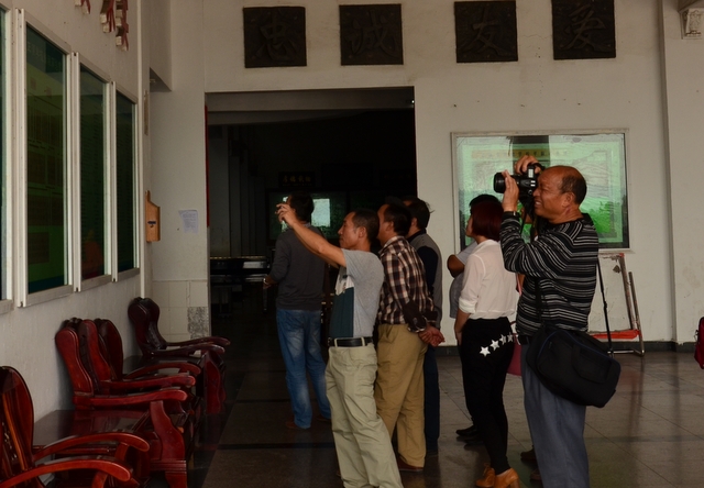随后经过学校食堂、小学部、西山风景区,客人们来到主体教学楼大厅。他们观看了我校学生在耒阳春晚上表演的大型开场舞《金蛇狂舞闹新春》视频,并参观2014年我校高考成绩榜、校史陈列展、开放式阅览厅。
