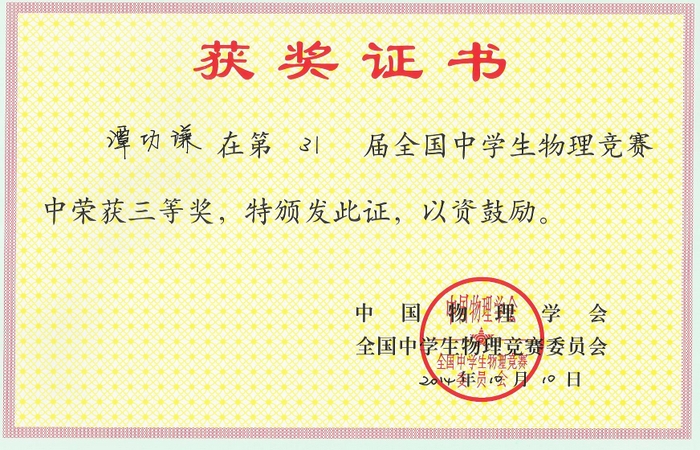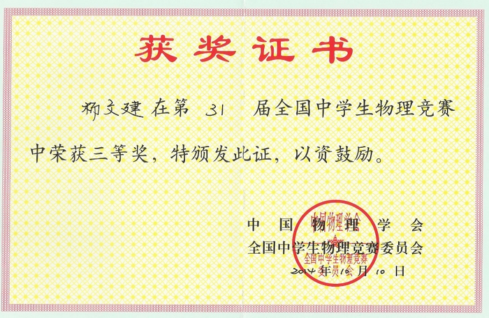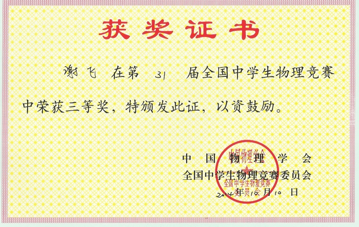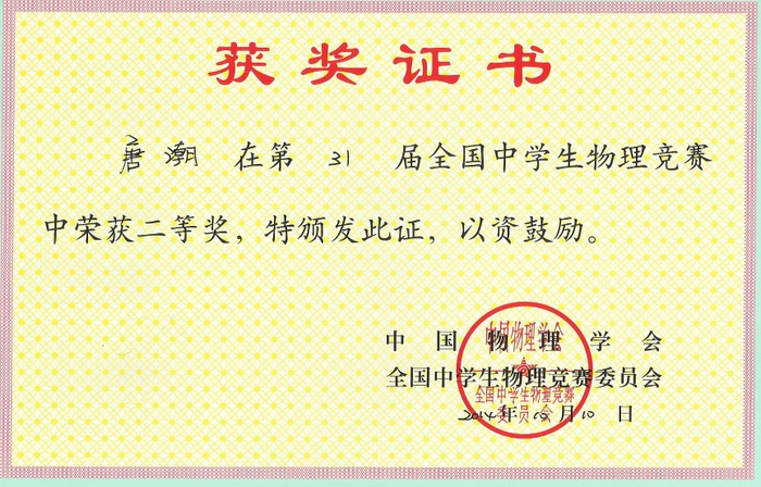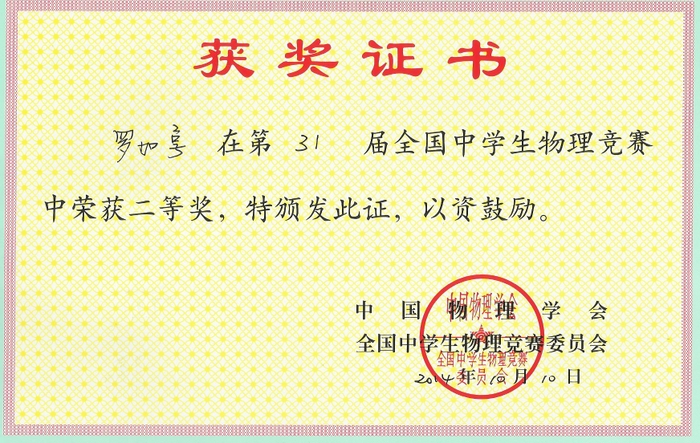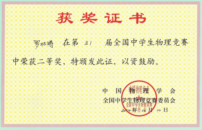 2014年全国高中物理奥赛成绩揭晓,正源学校罗林涛、唐潮等10名学生获奖