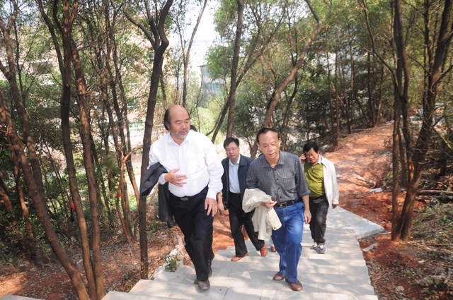 罗校长带领客人参观了我校校园。客人对我校园林式的自然化校园,古典式的秦砖汉瓦建筑赞叹不已。途径小学部教学楼踏上那青色的石阶来到了新建的西山公寓前,客人们更是打趣地说:“我们从湖南师大文学院来到了美国的哈佛大学。”当客人问及我校的办学理念时,罗校长谦逊地说:“我们没有什么理念,就是‘三好’即吃得好,住得好,跑得好。”此时,毕业于湖南师大教育系的教育部的刘能高说:“从教育学的角度来说,这就是最好的理念,这符合学生身心健康的发展规律。”