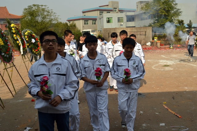 哀乐低沉,草木含悲;苍天流泪,大地悲鸣。我校师生抬着花圈、捧着鲜花走入追悼会现场。领导致悼词、英雄好友忆往事、家属致答谢词、向英雄遗像鞠躬等程序都在庄严肃穆中有序进行。仪式结束后,我校师生特地留下,向英雄遗像鲜花、鞠躬,并对英雄家属慰问。校长助理廖晴代表学校向家属郑重承诺,英雄周三龙在三中C388班就读的女儿周圆玉大学之前的所有费用由我校承担,同时随时接收周圆玉来我校就读。