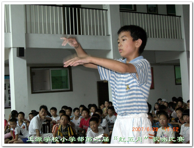 为了展示我校实施素质教育的丰硕成果,丰富学生的学习生活,提高我校的合唱水平,激发队员热爱学校、热爱艺术、热爱生活的感情,用高尚的艺术引导人,用完美的艺术塑造人,寓德育于活动之中,小学部于6月22日在交流大厅特举办第二届“红五月”校园歌曲合唱比赛。比赛必唱曲目有:《劳动最光荣》、《祖国,祖国我爱你》、《让世界充满爱》等,其它曲目同学们选择了:《感恩的心》、《明天会更好》、《茉莉花》等歌曲。同学们整齐的节奏、饱满的精神、活泼快乐的小动作等深深的留在了观众的脑海中。