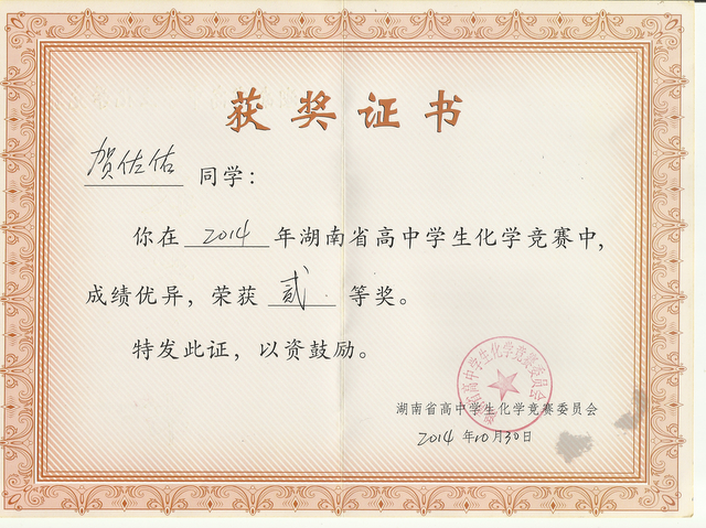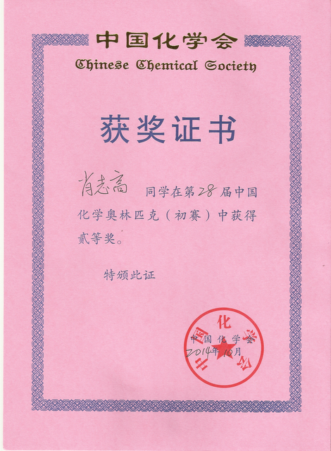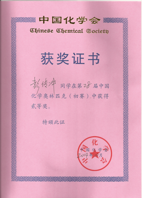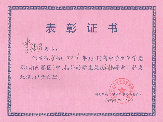 2014年化学奥林匹克竞赛湖南赛区成绩揭晓,我校有五人获奖