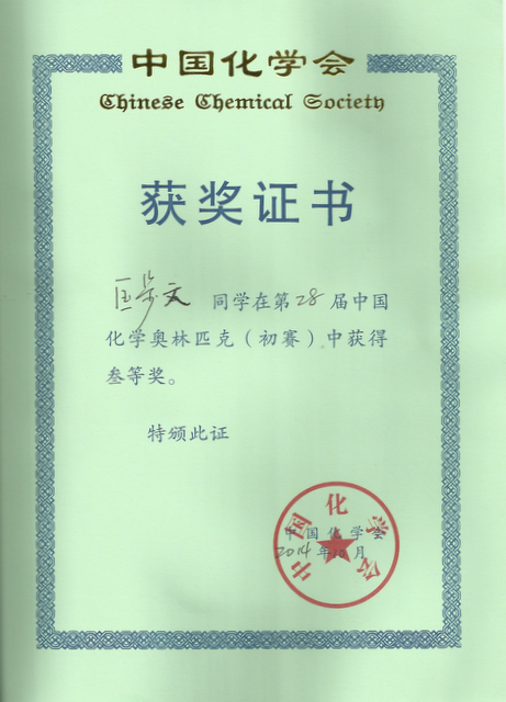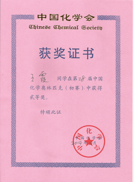 在第28届中国化学奥林匹克竞赛中,衡阳市共获国家级二等奖6人,我校3人,占了半壁江山,分别为第2、第3、第4名即我校高三学生肖志高、王霞、彭传冲同学。另外匡步文同学获国家级三等级,贺佐佑同学获省二等奖。