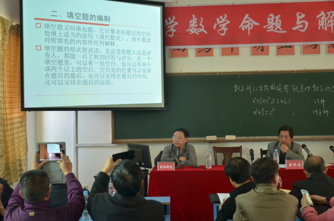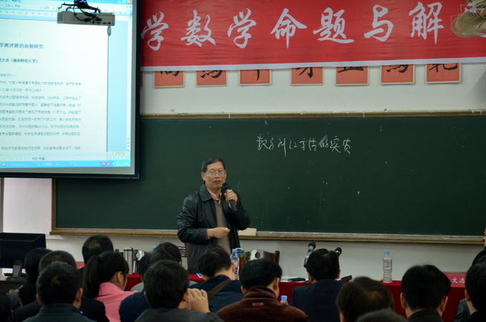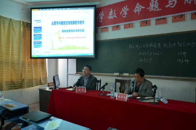 湖南省教科院基教所数学研究室主任、湖南省高中数学竞赛委员会主任作《中学数学试题的编制技术》讲座