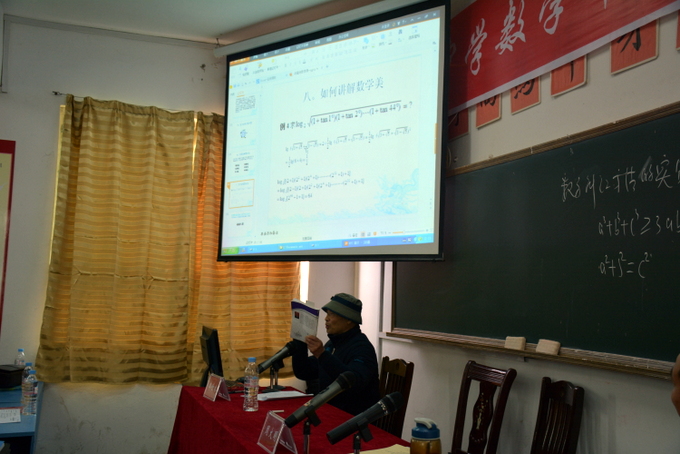 有74岁高龄的怀化学院教授傅世球谈到“数学教学艺术”说,“数学教学艺术更是教学的规律性与教师的独创性的完美结合、还是教学技能的高度发挥与教师的独立设计、创造的完满结合、是求真求实的和谐统一。”还针对如何“启发学生的教学思维”强调“幽默的教学艺术”有调动思维的积极性,“设计动画”有启发数学思维的作用并现场演示了三角形平移、旋转、翻折以及圆的切线等动画。