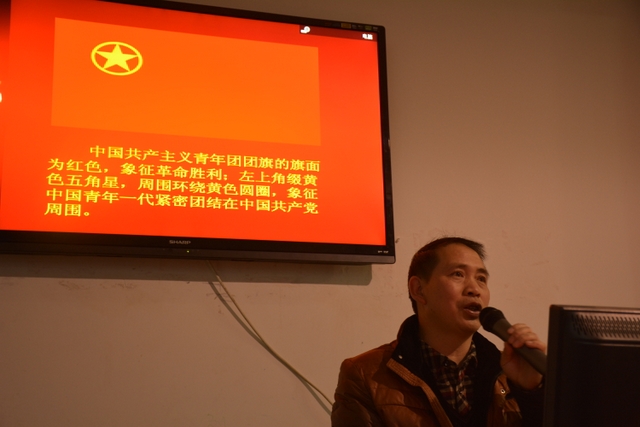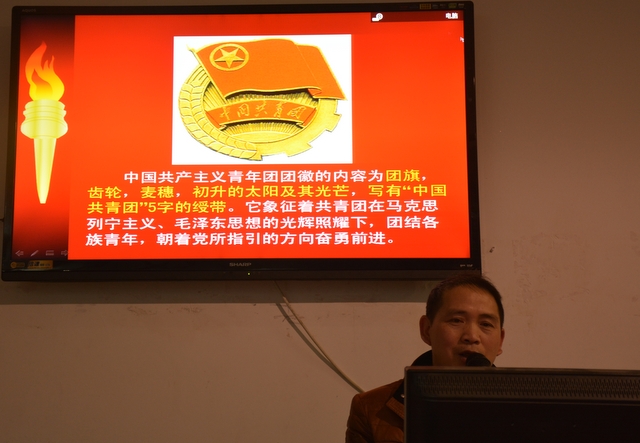 会议首先学唱团歌,周书记带头放声歌唱,将会议气氛活跃起来。优美的旋律、强有力的节奏,彰显共青团员的青春与活力。周书记的培训内容主要包括:共青团的性质、共青团的历史、共青团的入团条件、入团的程序、团员的权利和义务。