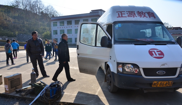 2014年12月22日上午,正源学校电工、电脑维护技师、不锈钢制作等技术师傅一行5人赶到偏远的长坪乡石枧中学,为该校送去并安装多媒体教学设备。
