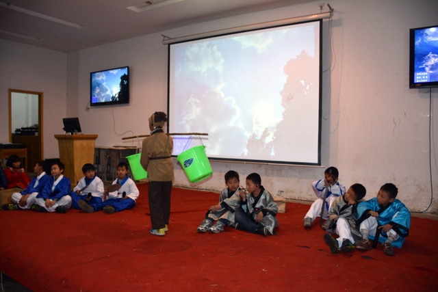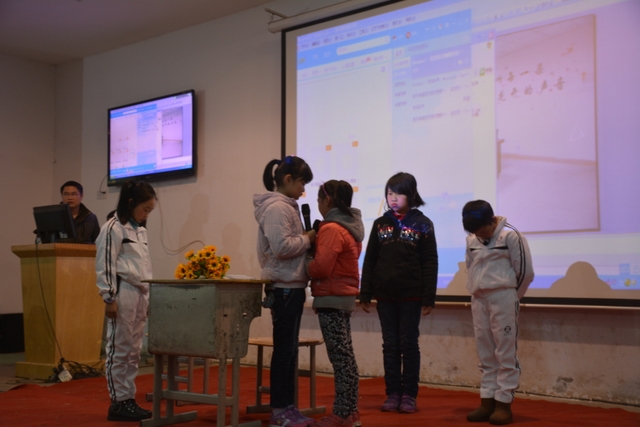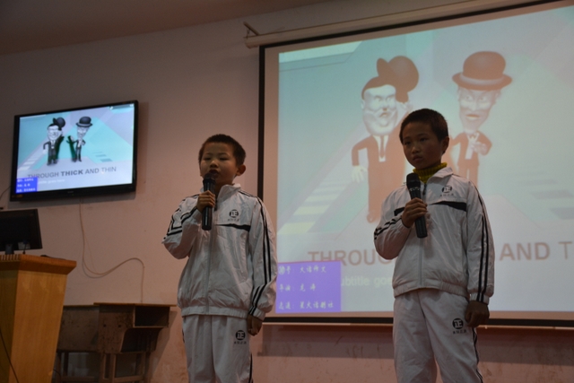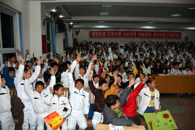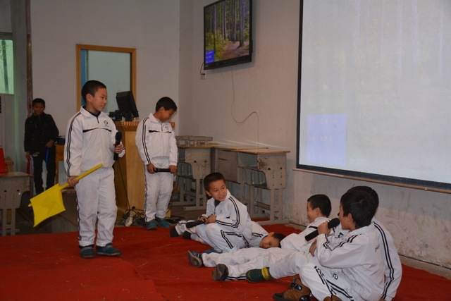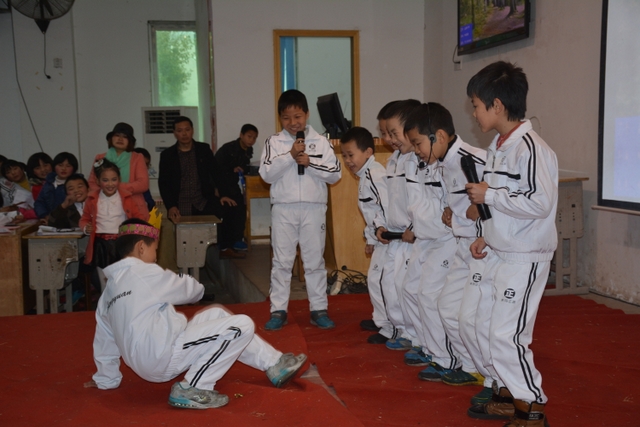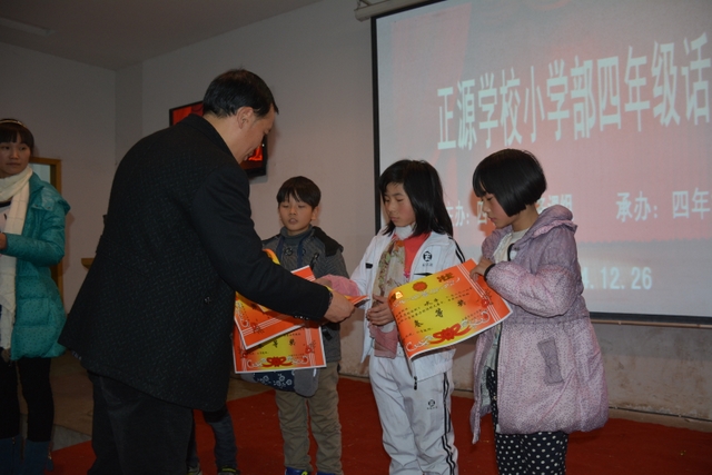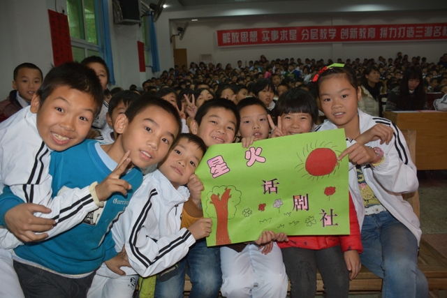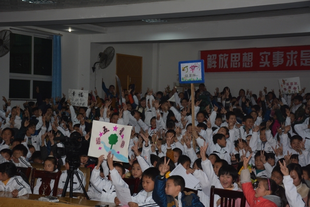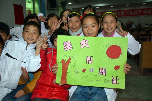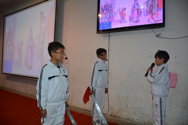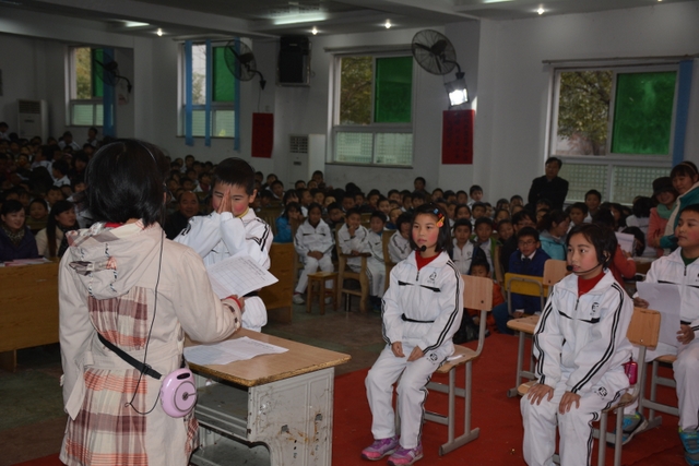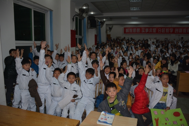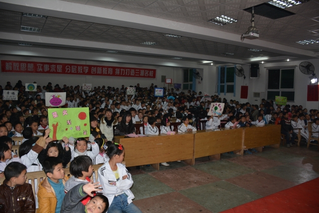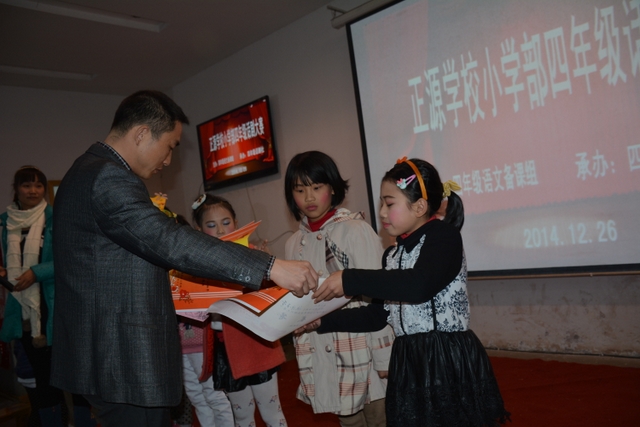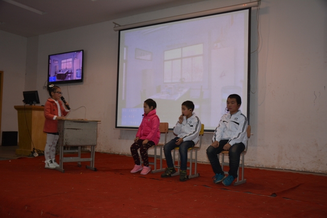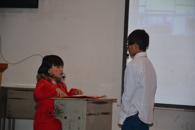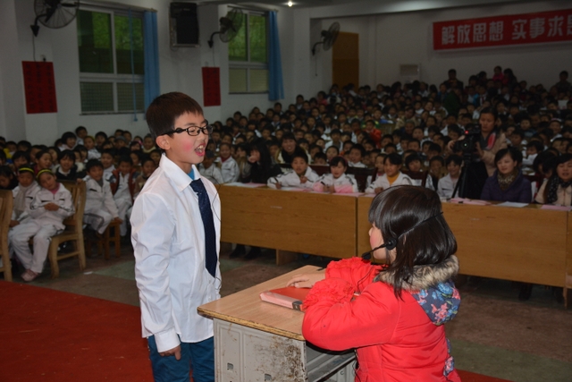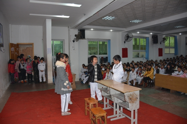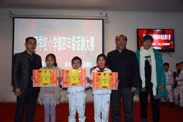为了让学生的生活更加丰富多彩,学习的兴趣更浓,2014年12月26日下午2点半,四年级全体师生在报告厅举行话剧大赛活动。罗校长亲临指导了本次话剧表演。