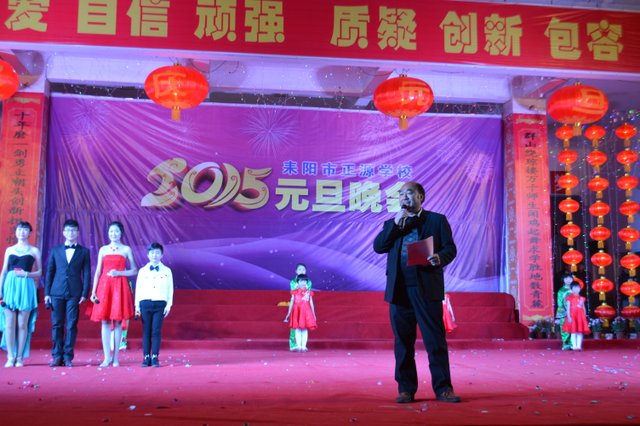 2014年12月30晚上,正源学校张灯结彩,龙腾狮吼,锣响鼓威,人头攒动,一万五千多名师生员工齐聚一堂,喜迎元旦,隆重而热烈的文艺晚会在学校广场上演。罗校长出席了晚会,并向全体师生员工致新年献词。