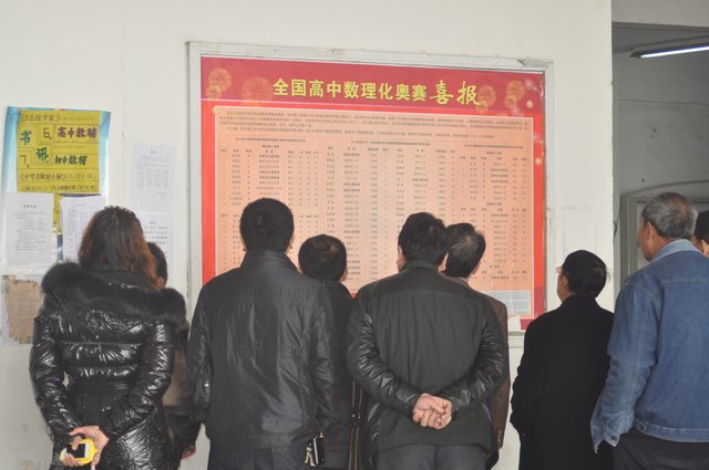 之后,领导们还到教学楼大厅了解我校2014年的高考和奥赛情况,并与来我校讲座的北京大学崔建华教授、肖立新教授以及我校高三部分优秀学生合影留念。