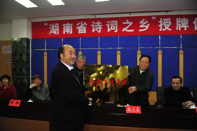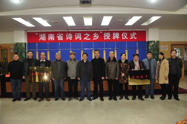 1月12日,我市被授予“湖南省诗词之乡”。省诗词协会会长赵焱森亲自授牌,市委书记彭玉明接牌。会上,正源学校被授予省诗教先进单位,罗校长接牌。
