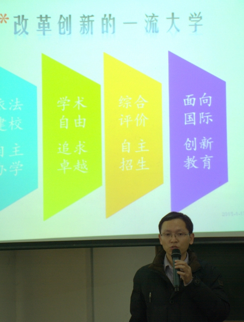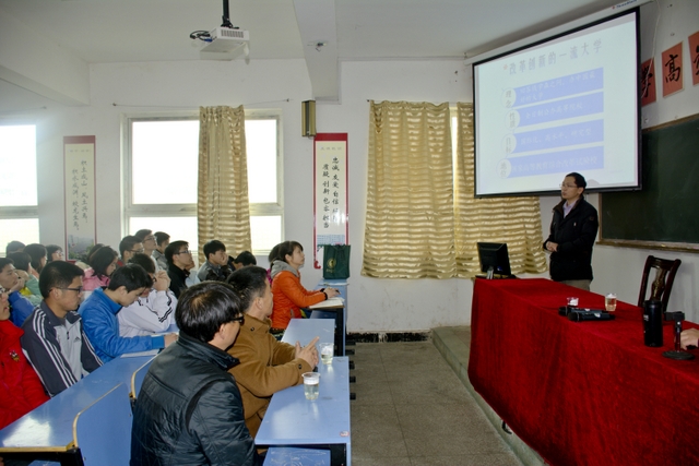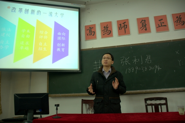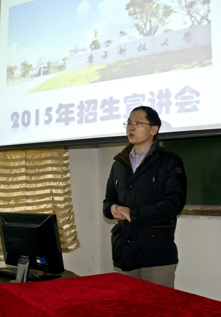 1月18日上午, 100余名高三学生聚焦在学校二楼会议室,听取南方科技大学张利军教授招生宣讲。张教授全面介绍了南方科技大学的校园环境、办学理念、运作模式、师资力量及专业设置等,引起了现场学生的极大关注。