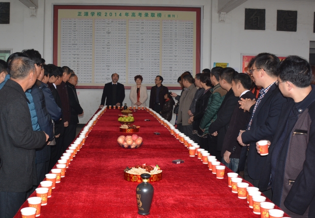 团拜会由学校办公室主任兼高二年级主任朱明芝主持,罗校长、梁老师和小学部主任刘德、初中部主任曾良古、党支部书记(同时作为高中部代表)毛小波以及高三年级主任徐文森、教务处主任王大昌、后勤处主任谷荣亮先后致拜年辞,小学部女老师们集体拜年,还有高三年级学生代表罗林涛也在会上祝福老师新年愉快、工作顺利。