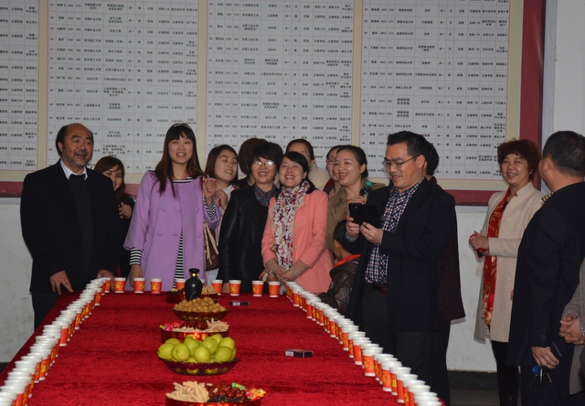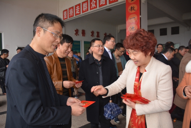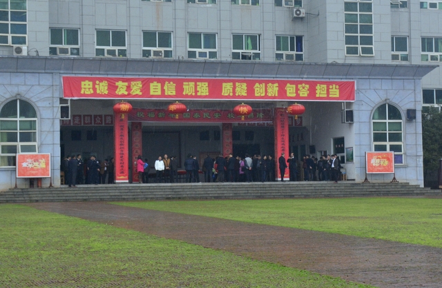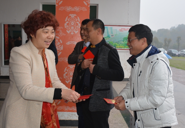 团拜会上,梁老师为各位到会人员发了红包。之后,在教学楼前面拍下了新年第一张大合影。