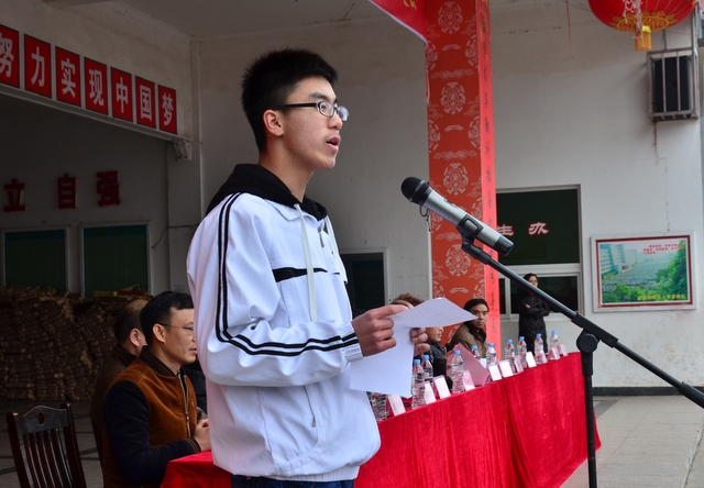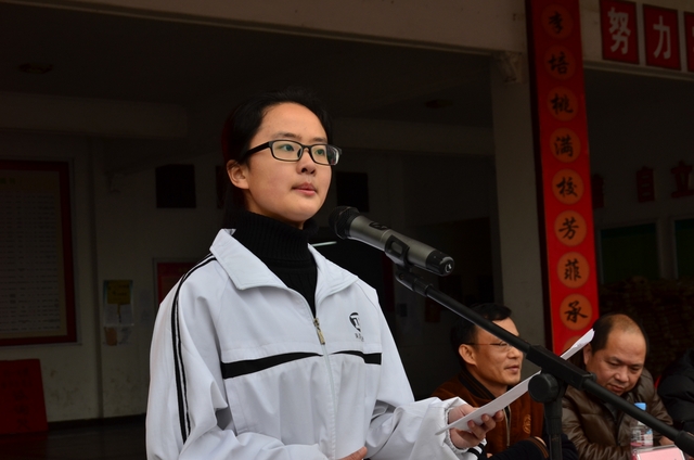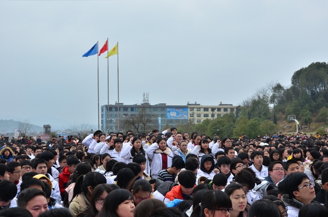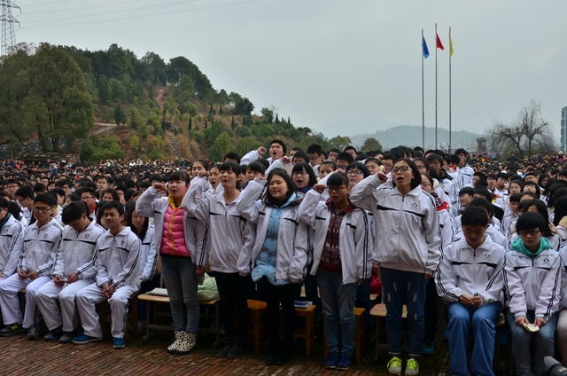 最后,全校学生再次起立,在大会主持人朱明芝的带领下,集体为高三学子加油,把会场气氛推向高潮。