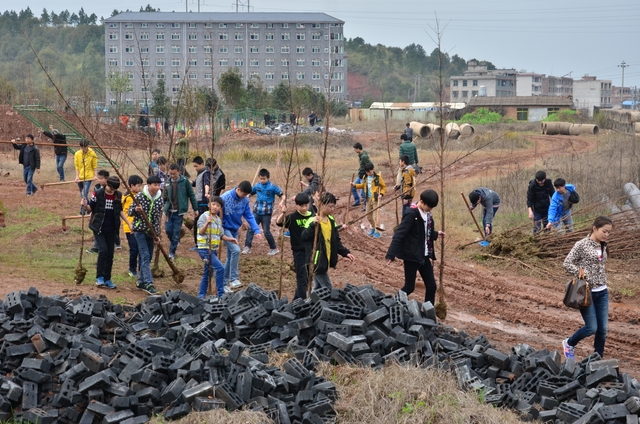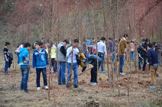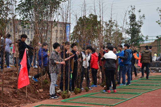 3月12日,是植树节。正源学校在校长罗湘云的号召下,校长室、后勤部、团支部、德育处、综治办、工程部六个处室及1000多名初高中学生,分上下午两场在学校中学生运动场外围进行大规模的植树活动。