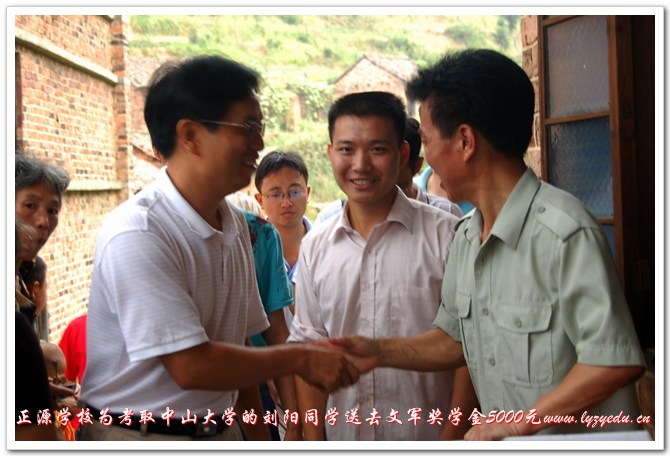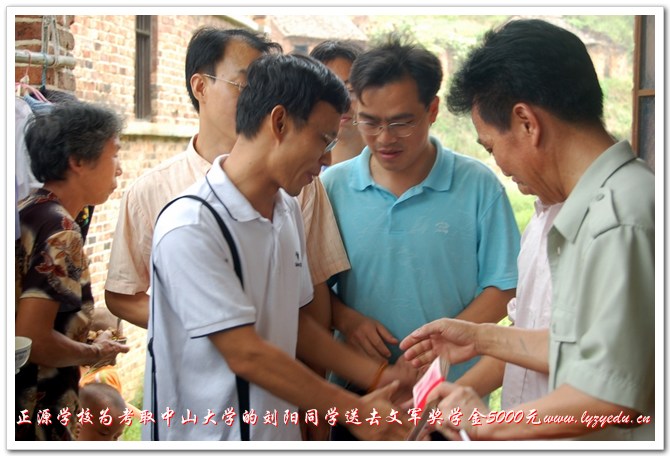 8月13日,我校部分领导和教师赶到江头,为今年考取中山大学的正源学子刘阳同学颁发文军奖学金5000元。